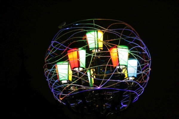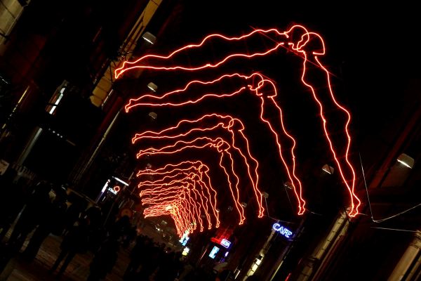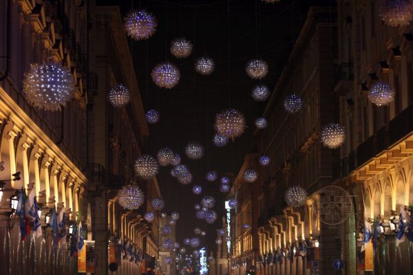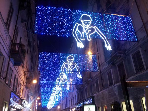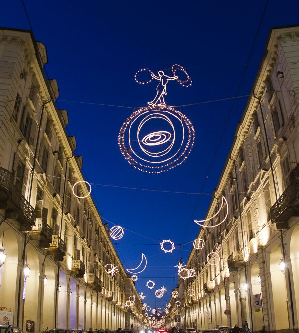 in piazza Santa Rita (Circoscrizione 2) ‘L’amore non fa rumore’ di Domenico Luca Pannoli, mentre in piazzale Chiribiri (Circoscrizione 3), ‘My noon’ del tedesco Tobias Rehberger, il grande orologio luminoso che scandisce le ore in formato binario. Sempre alla 3, nell’area pedonale di via Di Nanni – tra piazza Sabotino e via Chiomonte – fluttuerà l’opera ‘Ancora una volta’ realizzata con materiali ecosostenibili e fonti luminose a basso consumo energetico dall’artista piemontese Valerio Berruti. Le figure rosse dell’opera ‘Noi’ di Luigi Stoisa si intrecceranno in via Cibrario, tra i corsi Svizzera e Tassoni (Circoscrizione 4). Nella Circoscrizione 5 saranno installate: in piazza Eugenio Montale ‘Ice cream light’ della berlinese di adozione Vanessa Safavi e, nell’area verde compresa tra le vie Vibò, Stradella e Conte di Roccavione, le panchine ‘Illuminated Benches’ di Jeppe Hein. Le ‘Vele di Natale’ di Vasco Are, invece, aleggeranno in piazza Derna (Circoscrizione 6). Nel cielo di via Vanchiglia si vedranno riposizionate, dopo 19 anni, le ghiacciate ‘Palle di neve’ di Enrica Borghi, ideate dall’artista nel 1998 proprio per quella strada e, sempre in Circoscrizione 7, nella vivace piazza della Repubblica, sarà riaccesa ‘Amare le differenze’ di Michelangelo Pistoletto. All’entrata sud della città, nel laghetto di Italia ’61 (corso Unità d’Italia), si potrà vedere nuovamente ‘Luce Fontana Ruota’ di Gilberto Zorio, una stella rotante che evoca un mulino – opera totalmente ristrutturata anche in occasione della personale che il Castello di Rivoli dedicherà all’artista dal 2 di novembre. Al Monte dei Cappuccini risplenderà ancora ‘Piccoli Spiriti Blu’ di Rebecca Horn. Entrambe sono opere permanenti della Città allestite nella Circoscrizione 8.
