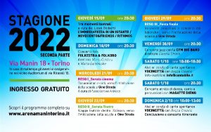 Arena ManinTorino che dal 15 settembre al 2 ottobre 2022 propone