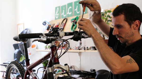 “Si chiamano entrambi Alberto. Il primo ha aperto la sua ciclofficina dopo aver avuto una vita un po’ difficile, segnata da eccessi e dipendenze. Il secondo è un ragazzo laureato in filosofia, già padre di due bambini, che è stato un pilota di trial e poi ha deciso di intraprendere questo mestiere”.
