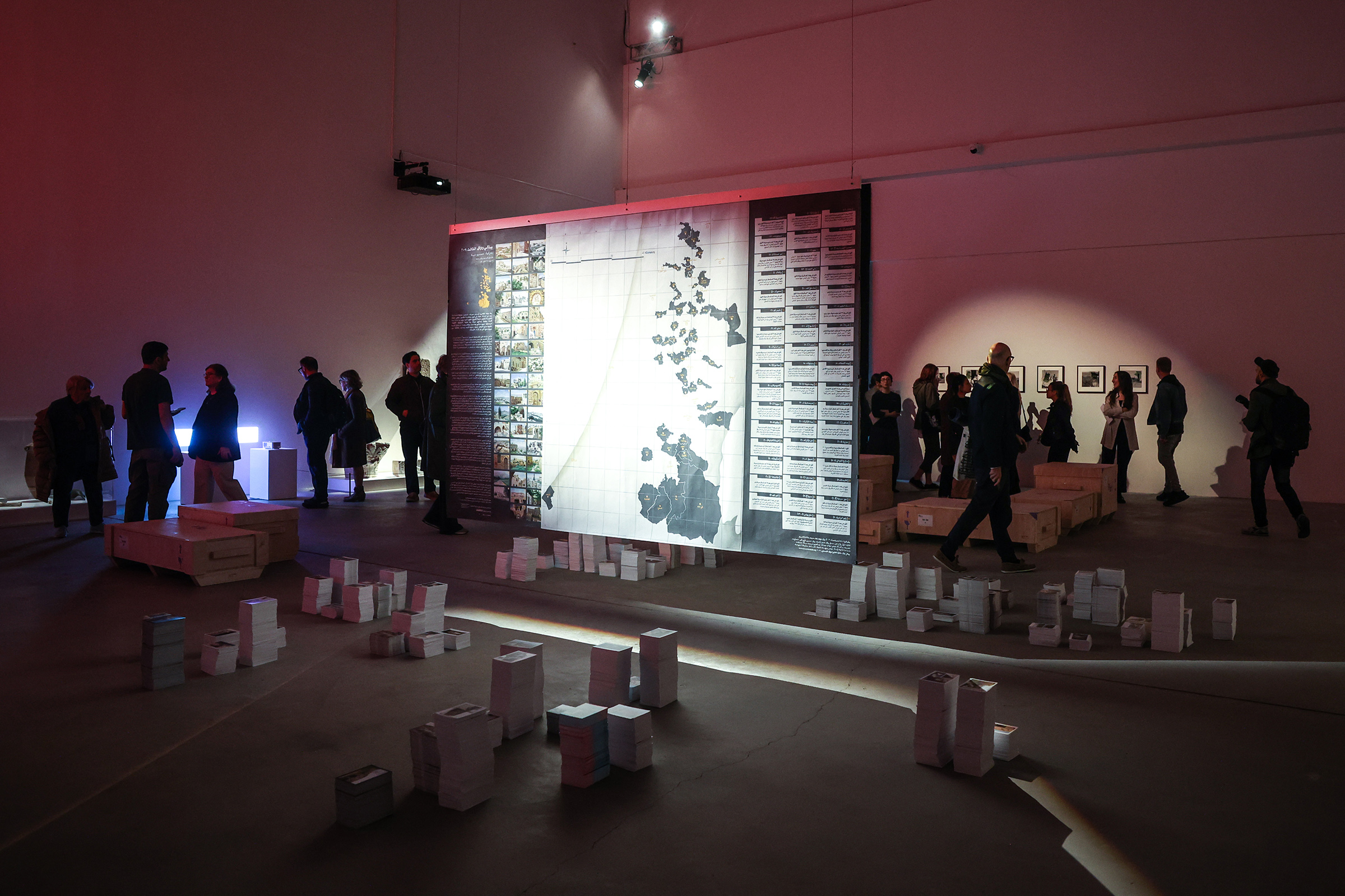 Quattro le sezioni tematiche, che accompagnano il visitatore in un percorso attraverso il tempo e lo spazio, intrecciando archeologia, storia e contemporaneità. Nella prima sezione, Passato, presente e futuro in pericolo, si delinea il tema della distruzione del patrimonio culturale: edifici, siti archeologici e monumenti, ma anche le comunità che mantenevano vivi i luoghi. Attraverso un dialogo tra reperti archeologici, opere contemporanee e materiali documentari – tra cui le fotografie raccolte dall’archeologo Fadel Al Utol e il video di Forensic Architecture – si restituisce la frattura tra ciò che è stato e ciò che sopravvive.