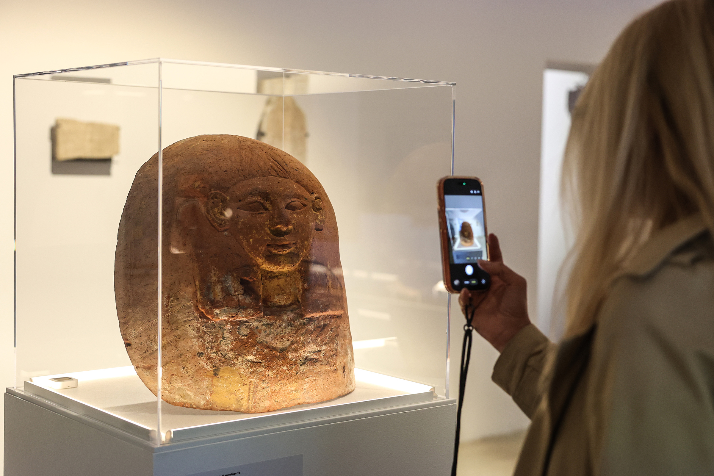Una serie di reperti documenta poi i processi di fusione tra le diverse tradizioni religiose attestate nel territorio di Gaza. In particolare, la sezione Corpi, riti e memorie mette in luce come, anche nelle pratiche funerarie, emerga l’adozione e la rielaborazione locale di modelli egizi, come nel caso dei sarcofagi antropoidi “a pantofola”, che testimoniano un contesto profondamente multiculturale.