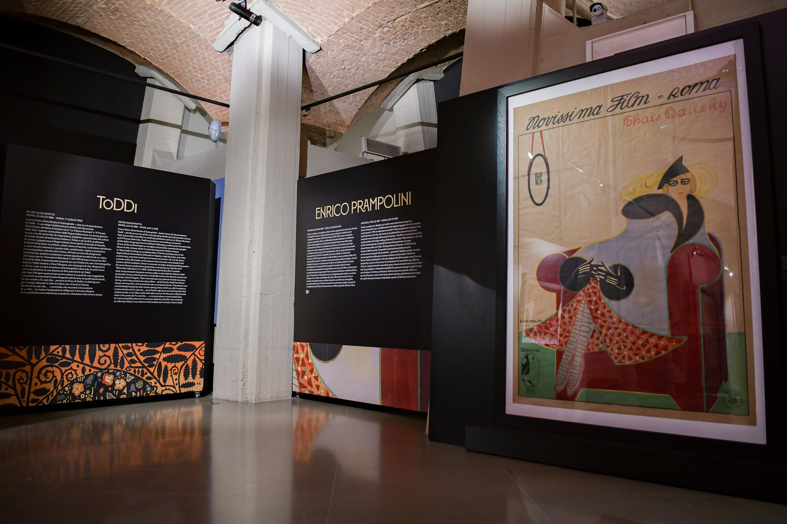 Il Futurismo degli anni Dieci del Novecento si manifesta nelle esplosive e colorate creazioni di Scarpelli per il film Il sogno di Don Chisciotte così come nell’elegante esecuzione di Prampolini per Thaïs, considerato l’unico film italiano futurista sopravvissuto. Con Toddi e Vera D’Angara, coppia di artisti fra le più originali della storia del cinema e dell’illustrazione, si gode della raffinatezza grafica degli anni Venti votata alla piacevolezza estetica.