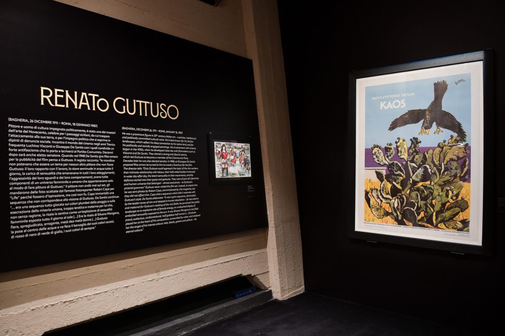 Lontano da ogni cedimento estetico ma, al contrario, manifestazione di un chiaro messaggio politico è il celebre manifesto de La corazzata Potëmkin ideato dal russo Rodčenko, fondatore del Costruttivismo. Un affisso di grande potenza visiva, rarissimo, considerato fra i più emblematici della fusione fra cinema e arte.Se la stagione del cinema muto è testimoniata da opere così rappresentative, anche l’epoca del sonoro ha avuto i suoi manifesti d’artista. I registi Giuseppe De Santis, Francesco Rosi, i fratelli Taviani hanno scelto di affidare ai pittori Guttuso e Baj la realizzazione di materiali pubblicitari che, uscendo dai canoni tradizionali della promozione cinematografica, divengono interpretazioni personali e autoriali. Arte e cinema camminano parallelamente, a volte si incontrano, si scambiano i ruoli, raccontando quella ricerca di sperimentazione che in realtà è una potente affermazione artistica.