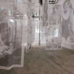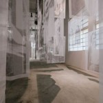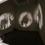 Infine scatole di cartone ricoperte di cellophane e impilate l’una sull’altra formano costruzioni di dimensioni differenti e prendono possesso dello spazio. Instabili torri, archivi scomposti – evoluzione delle boites de biscuits care a Boltanski – poggiano a terra come dimenticate e appena rischiarate dalla luce delle lampadine che da lontano scrivono la parola DOPO nel buio. La memoria e lì e, come i circuiti cerebrali, attende solo di essere riattivata, aprendo cassetti, cercando nelle storie comuni, giocando con i rimandi nel presente.
