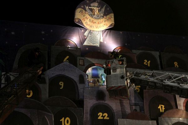 Successivamente, grazie all’aiuto dei Vigili del Fuoco del Comando Provinciale di Torino, è stata aperta la prima casella del Calendario dell’Avvento realizzato dal Teatro Regio di Torino sui bozzetti di Emanuele Luzzati con i disegni e il progetto artistico di Lastrego&Testa: un grande castello fiabesco che scandisce il conto alla rovescia fino al Natale. Ogni giorno, alle 18, i Vigili del Fuoco del Comando Provinciale di Torino, con i loro mezzi più curiosi e spettacolari, scoprono una nuova casella. La cerimonia è diventata ormai una rituale consuetudine per vivere insieme l’attesa e l’entusiasmo della sorpresa.