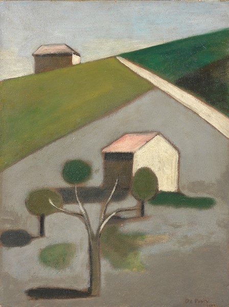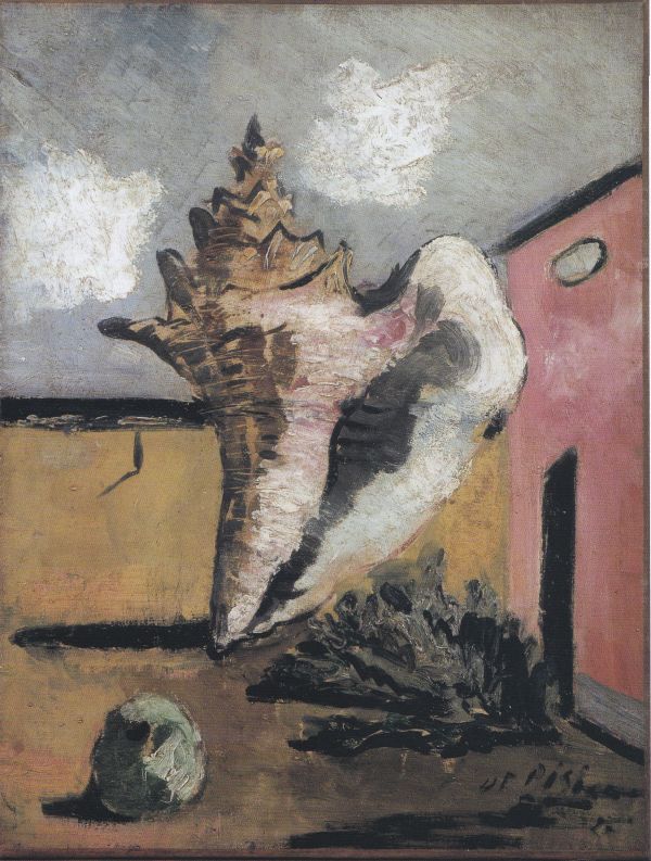 In particolare il suo sguardo va al Dadaismo, in contatto epistolare con Tristan Tzara, al Futurismo, in rapporto a Depero, e alla Metafisica, di cui si sente partecipe fin dalle origini ferraresi del movimento nel 1917, in stretta amicizia con de Chirico, Savinio, Carrà. Ne sono testimoni opere come Natura morta isterica (1919) o Papier collé (1920) un raro collage degli esordi. La sezione sviluppa soprattutto il rapporto con il Maestro della Metafisica, con cui de Pisis ha intessuto un’amicizia duratura attestata da un giovanile Ritratto de Chirico che l’artista ha sempre conservato tra le proprie carte. Rilevante, in questa sezione, è il raffinato Paesaggio metafisico (1923) che rivela come le geometriche asprezze dell’amico siano metabolizzate in uno stile personale che punta alla dolcezza espressiva e alla sintesi visiva.