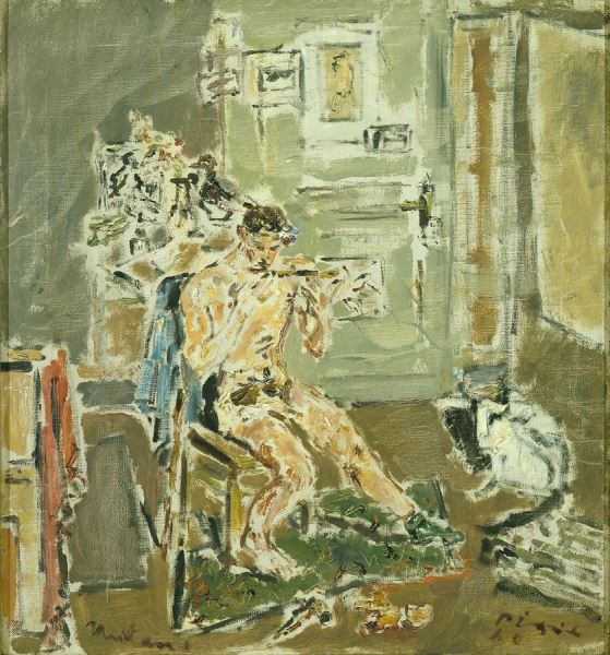 Lo studio del Maestro da lui chiamato anche “camera melodrammatica” è, di volta in volta, trasferito nelle varie città in cui l’artista ha vissuto: questo spazio è il luogo delle collezioni di oggetti d’antiquariato e di quadri di pittori antichi, una sorta di fusione tra la Wunderkammer per la raccolta di oggetti ispiratori e la garçonniere per gli studi di nudo maschile. Una serie di chine su carta di nudi maschili – tra cui Nudo maschile sdraiato (1931) e Nudo (1934) – rispecchia l’aspetto sottilmente erotico dello sguardo di de Pisis. Una scelta di opere antiche appartenute alla sua collezione rivela inoltre la sua passione di fine conoscitore: artisti minori del Settecento ai capolavori del grottesco Pietro Della Vecchia, pittore del Seicento veneziano, di cui l’artista ama il realismo crudo e ambiguo.