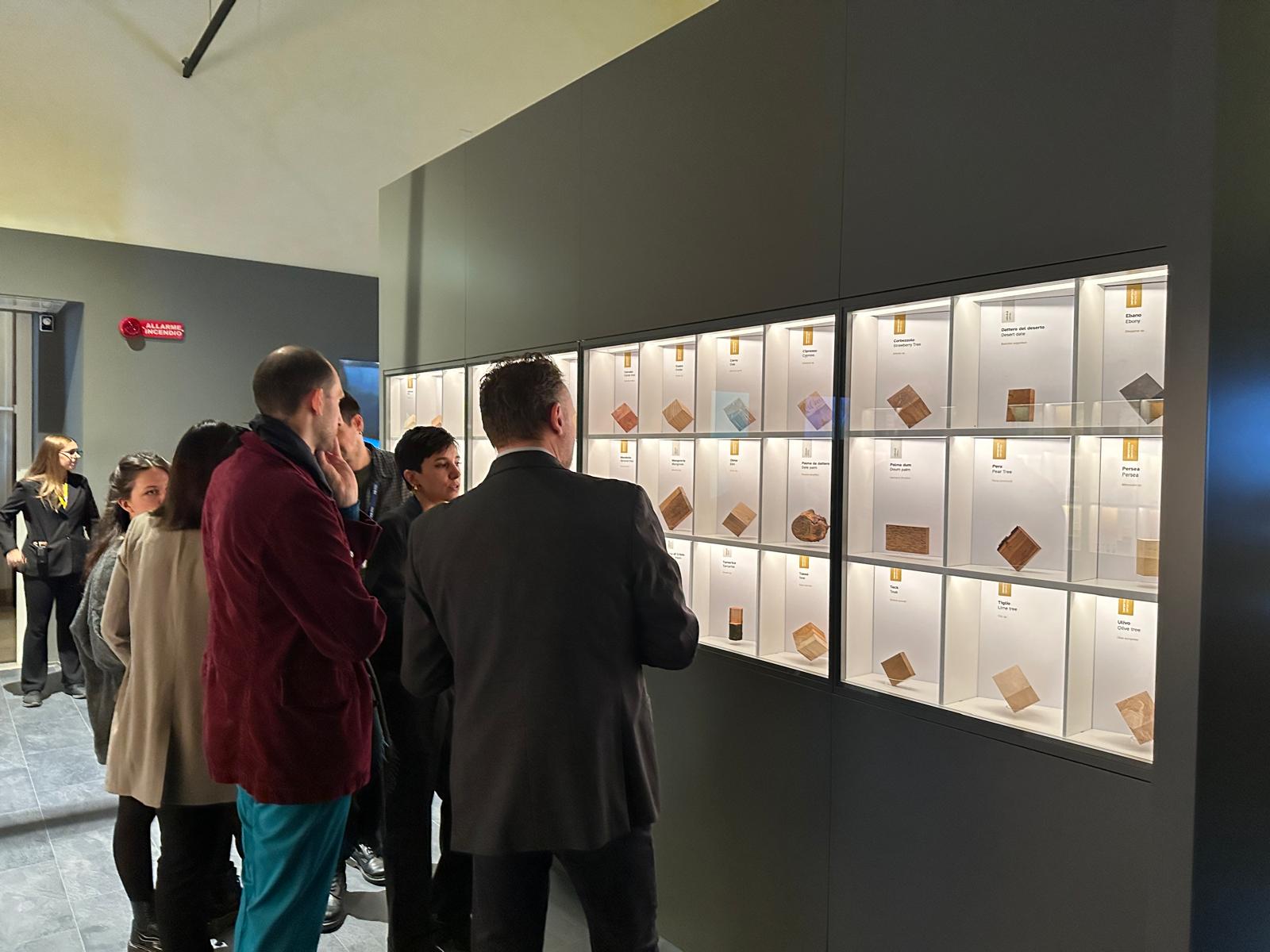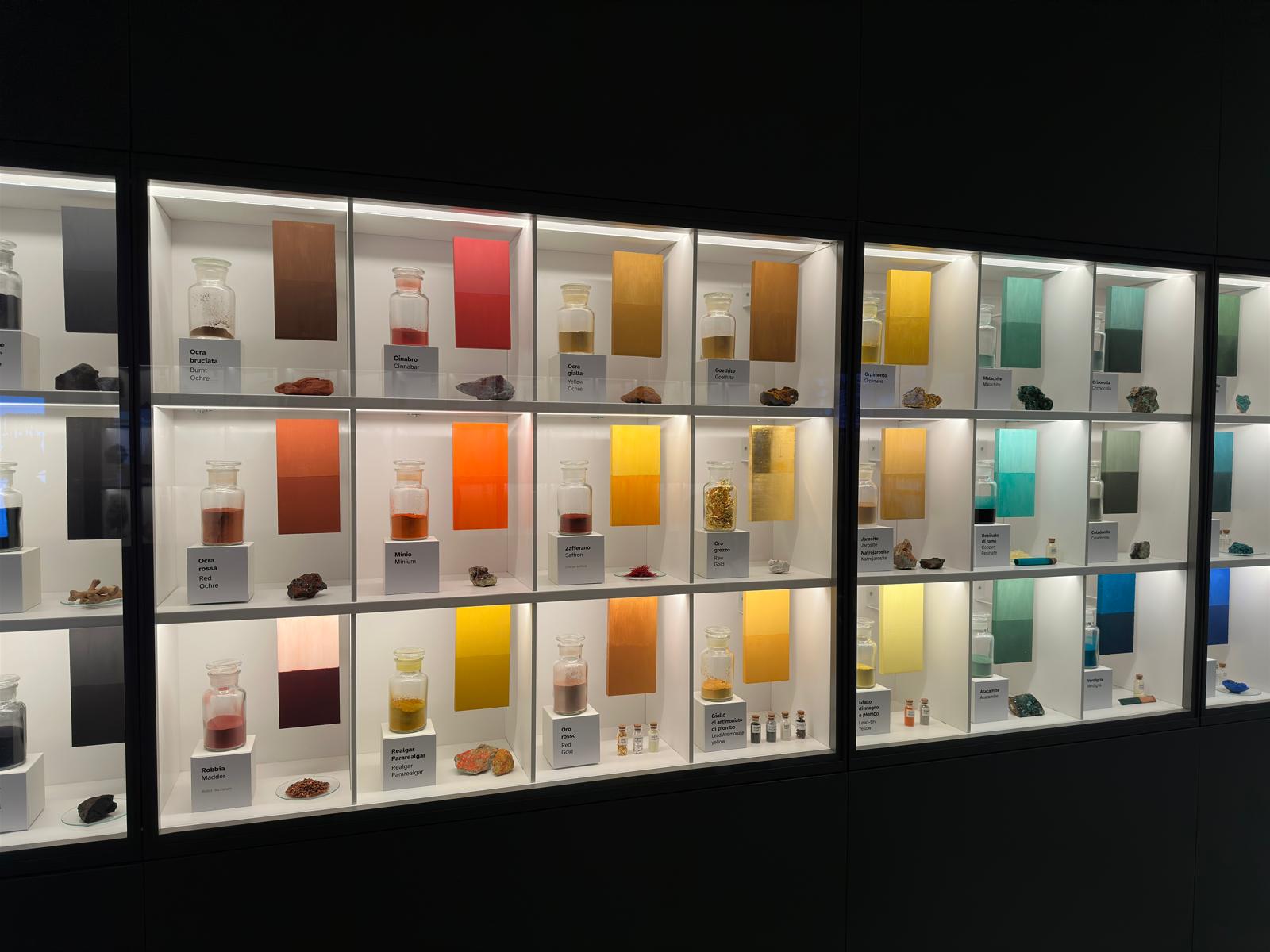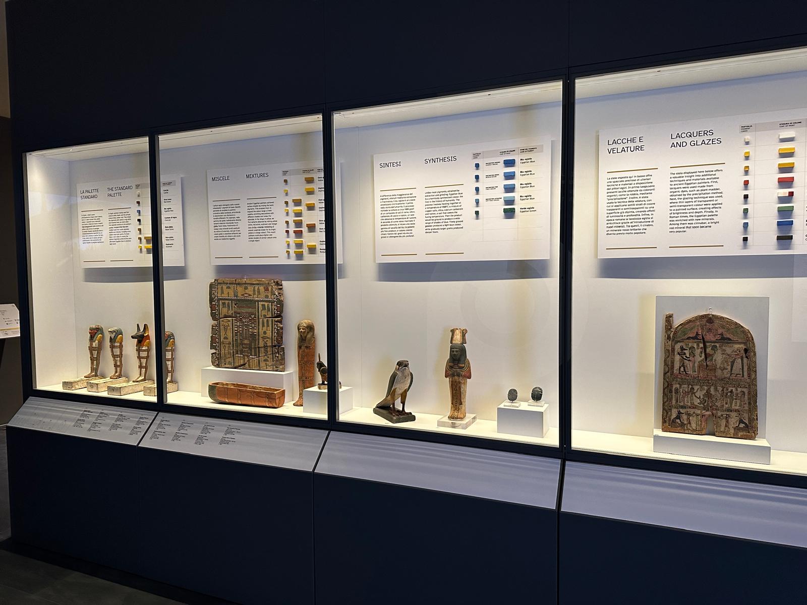 Nella prima sala due grandi librerie raccolgono ottanta varietà diverse di legni e pigmenti utilizzati dagli antichi artigiani per la realizzazione degli oggetti di uso quotidiano. Un percorso narrativo in cui dialogano reperti, grafiche e video illustra la tavolozza degli antichi, le tecniche di miscelatura dei colori e le successive fasi della pittura. L’applicazione di queste tecniche si può vedere nel sarcofago esposto in sala, la cui complessa vicenda costruttiva è raccontata attraverso proiezioni e videomapping. La seconda sala è dedicata all’esposizione di quasi cinquemila vasi, esposti in grandi vetrine estese fino al soffitto. Statue, stele, frammenti di soffitti e vasi in pietra sono i protagonisti dell’ultima sala, in cui si valorizza la grande competenza tecnica degli antichi Egizi nella lavorazione di pietre differenti.