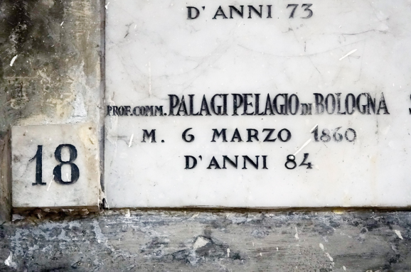 Inumato al Cimitero Monumentale, della sua sepoltura si erano perse le tracce. E’ stata una casualità a permetterne il rinvenimento: la richiesta di informazioni sulla tomba della famiglia Solei, fornitori di tessuti per le residenze reali di casa Savoia, pervenuta agli uffici di AFC nell’ambito di una ricerca sulle manifatture torinesi. Si è potuto così accertare che oltre ai membri della famiglia Solei vi era sepolto anche Pelagio Palagi.