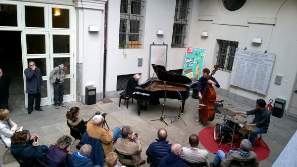 La musica sovrasta gli ex quartieri militari torinesi grazie a due ore di pura armonia donataci dal trio Riccardo Zegna, storico pianista un po’ naïf ma molto preparato il quale cerca di rinnovare il messaggio linguistico tenendo conto del passato.