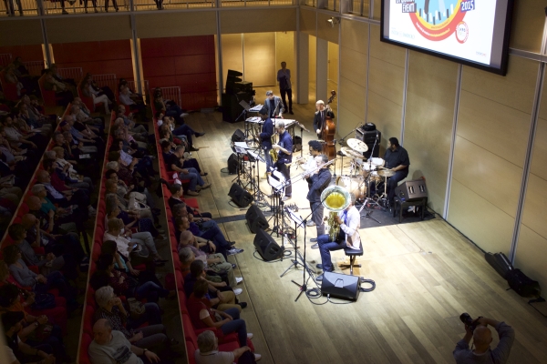 Il concerto gratuito, già di prima mattina vantava una lunga coda all’esterno, solo i primi trecento hanno potuto accedervi. Fatte le dovute presentazioni, la sala ghermita ha riservato un momento di raccoglimento per la tragica scomparsa di Marco Tamburini, trombettista e compositore italiano, nella notte. Le aspettative del pubblico sono state ripagate da un grandissimo virtuosismo esecutivo che ha accompagnato l’ascoltatore in luoghi fino ad ora sconosciuti della storia del Jazz. Infatti i momenti musicali, composti da basi elettro-acustiche dalle scintillanti tinte ultraterrene accompagnate maestralmente da tutta la band con momenti di assolo di sassofono ipnotizzanti, sono stati seguiti con un silenzio surreale interrotto solamente da lunghi e fruscianti applausi da parte del pubblico.