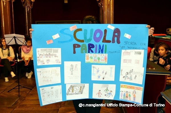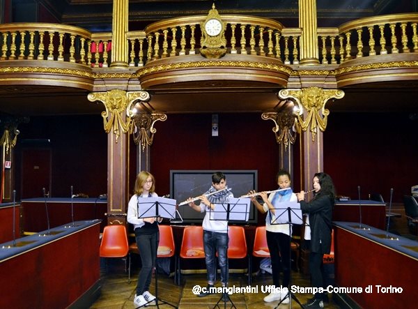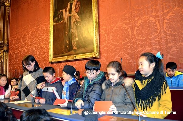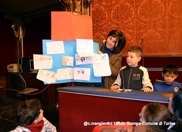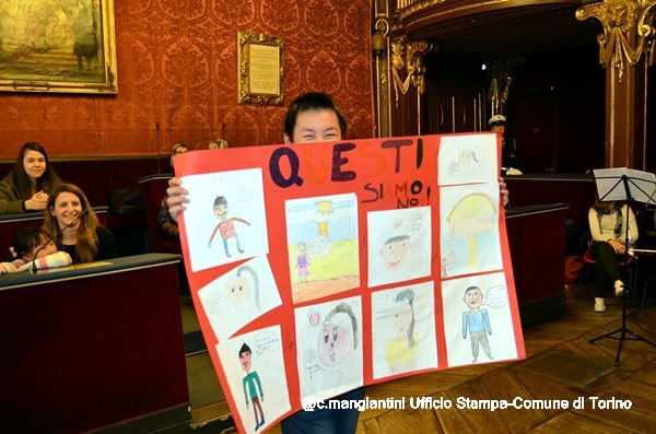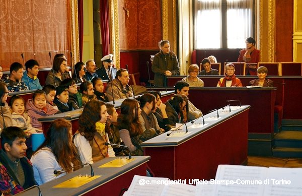 Gli allievi delle scuole torinesi hanno trovato posto sugli scranni su cui siedono i rappresentanti dei cittadini e dove le lingue, di diverse nazionalità, sono risuonate in una melodia di fonemi accompagnate da note musicali con le bambine e i bambini internazionali di recente arrivo a Torino.
