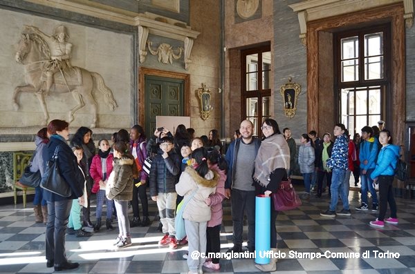 Mariagrazia Pellerino, Assessora alle Politiche Educative del Comune di Torino, ha incontrato un folto gruppo di bambine e bambini delle scuole primarie Parini, De Amicis e Rayneri, insieme alle ragazze e ai ragazzi degli I.C. Leonardo da Vinci, TO 2, Vittorino da Feltre e della scuola media statale Norberto Bobbio per far conoscere loro Palazzo Civico, la “casa istituzionale” di tutte e tutti coloro che abitano a Torino.