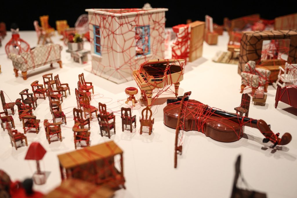 Il percorso, ampio e di grande intensità espressiva, ripercorre l’intera produzione di Shiota, offrendo un’immersione nel suo linguaggio poetico e visivamente travolgente. Spesso ispirate da esperienze personali, le opere dell’artista esplorano l’intangibile — ricordi, emozioni, sogni e visioni interiori — e interrogano concetti universali come l’identità, la relazione con l’altro, la vita e la morte. I fili che attraversano i suoi lavori, tesi nello spazio come ragnatele di memoria e connessione, coinvolgono la parte più profonda e vulnerabile dell’essere umano, trasformando ogni ambiente in un luogo di contemplazione e silenziosa riflessione.