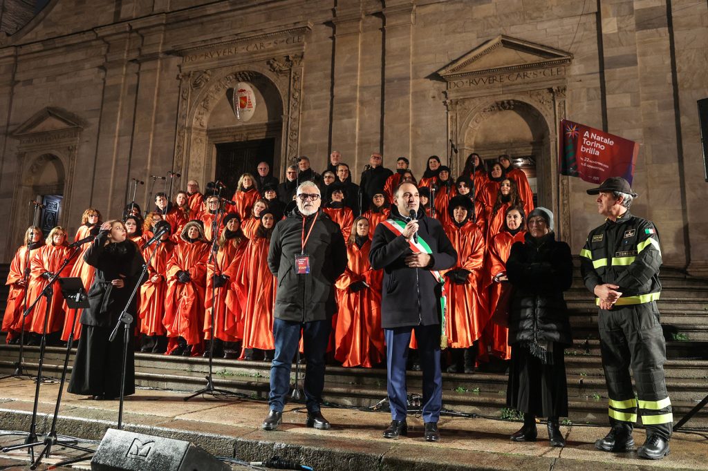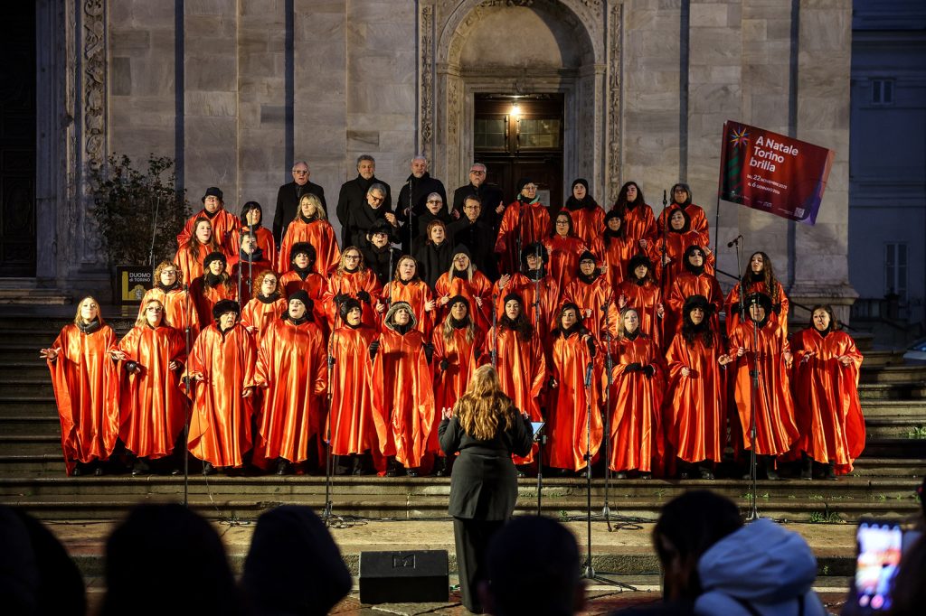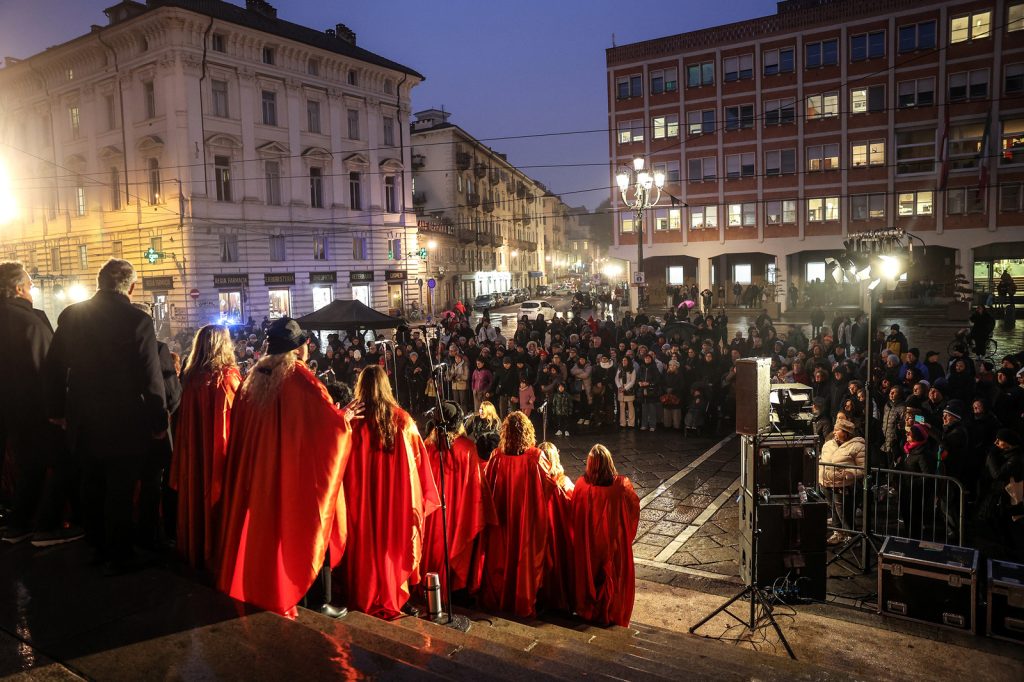 Con l’apertura delle prime due caselle del Calendario dell’Avvento in piazza San Giovanni, Torino ha mosso oggi il suo primo passo nel clima delle feste. Tanti i torinesi e i visitatori le persone che, accompagnate dai canti dell’Academy Gospel Choir, si sono radunate attorno al grande calendario firmato Teatro Regio e ispirato ai bozzetti di Emanuele Luzzati.