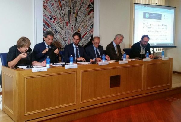 Nella foto, da sinistra: Antonella Rampino, Fabio Cassese, Enzo Lavolta, Piero Fassino, Giovanni Camilleri, Paolo Giaccaria.
