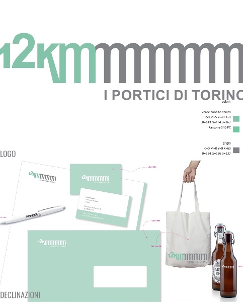 “Il logotipo ‘12 km’ è internazionale e chiunque, da qualsiasi parte del mondo lo legge nella propria lingua. Inoltre – sottolinea Lageder nella relazione allegata al progetto – indica un dato specifico, informativo, interessante che incuriosisce e invita a esplorare i 12 km di shopping, arte e cultura. Il marchio è facilmente memorizzabile sia dal punto di vista visivo che cognitivo. I dodici archi delle “m” allungate simboleggiano i 12 km. Il logo rappresenta la costruzione dei palazzi, la strada, il percorso e in particolare chiaramente i portici con i loro negozi”..Nella relazione presentata per il bando la bolzanina Helene Lageder sottolinea il ‘motto’ da cui è partita per l’ideazione del logo, ovvero la lunghezza dei portici di Torino visti da lei come 12 km senza soluzione di continuità di shopping. 12