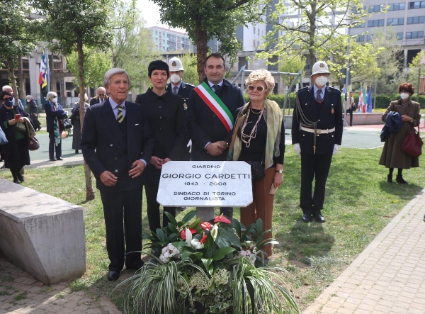 Si è svolta questa mattina la cerimonia di intitolazione a Giorgio Cardetti, sindaco di Torino fra il 1985 e il 1987, del giardino delimitato da via Bologna, c.so Novara n. 78 interno e via Como n. 18 interno.