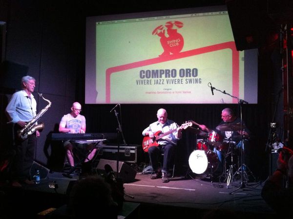 La terza giornata del Torino Jazz Festival è proseguita alle ore 16 presso l’accoglientissimo bar Blah Blah in via Po, dove si è svolta la presentazione del trailer di Compro Oro – Vivere Jazz, Vivere Swing a cura di Marino Bronzino, Toni Lama (registi) e Angelo Santovito (direttore della fotografia). L’intero documentario, che sarà disponibile a partire dal prossimo mese di settembre, racconta di un tuffo nella generazione del passato risalendo fino a quella dei giorni nostri attraverso una musica ricca di energia che fin dall’inizio è stata d’ispirazione ai più giovani.