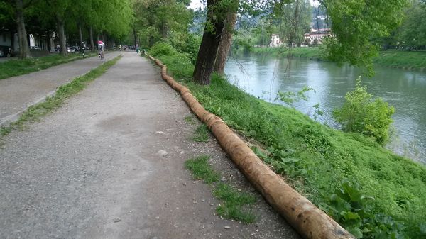 In lungo Po Antonelli sono in corso i lavori per la realizzazione di una nuova recinzione in legno della sponda del Po. La vecchia ringhiera viene rimossa e sostituta da una “cordolatura” fatta di tronchi lungo il bordo della passeggiata, là dove il declivio non si affaccia direttamente al fiume. Dove la sponda è invece più ripida, per circa il 30 percento del percorso, viene ripristinata la palizzata con le caratteristiche di quella precedente. (mm)