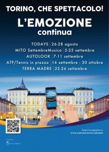 Continuano poi per tutto il mese di settembre gli appuntamenti di Torino, che spettacolo!, il cui calendario è disponibile al sito http://www.comune.torino.it/eventi/