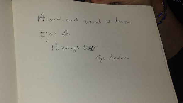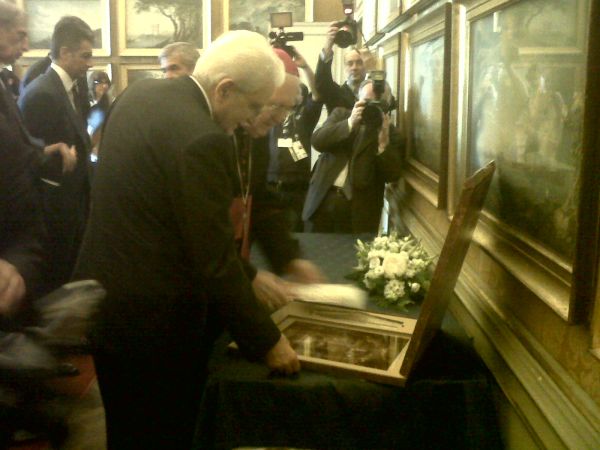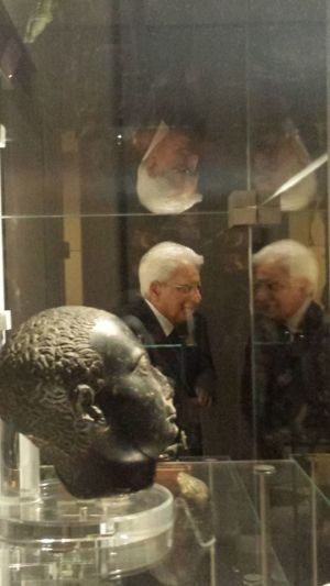 h17.45. La visita al Museo Egizio del Presidente Mattarella. Sul libro degli ospiti del Museo ha scritto: “Ammirando quanto il Museo Egizio offre, 14 maggio 2015, Sergio Mattarella”.