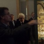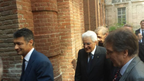h14.00. Dopo il pranzo al cambio, il presidente Mattarella si è concesso un fuori programma: insieme a Fassino e Chiamparino, si è avviato a piedi verso la Prefettura fermandosi in piazza Castello per una breve visita a Palazzo Madama, per ammirare l’autoritratto di Leonardo (foto).