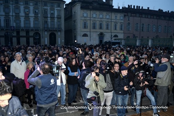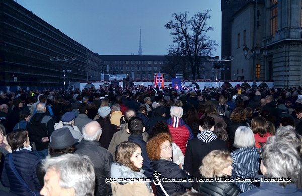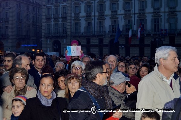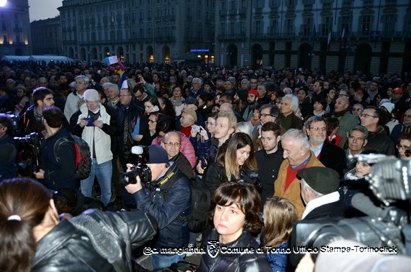 17 – Il sindaco Fassino arriva in piazza Castello, con un migliaio di persone di ogni età e di ogni credo religioso. Sul palco con il sindaco altri sindaci, parlamentari piemontesi, rappresentanti del mondo del lavoro e dell’associazionismo. presente anche Sergio Chiamparino, presidente Regione Piemonte.