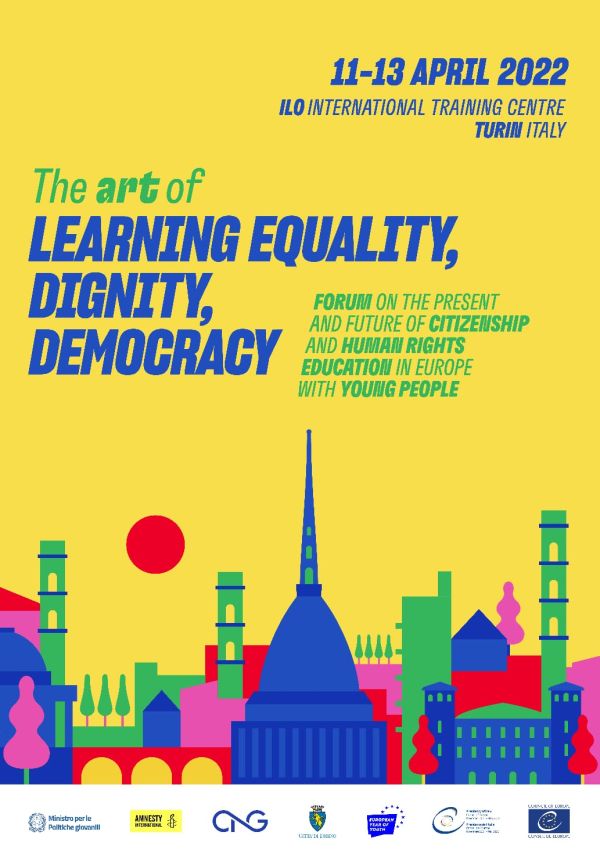Il meeting è stato organizzato dal Consiglio d’Europa, dal Dipartimento per le Politiche Giovanili e il Servizio Civile Universale e il Ministero dell’Istruzione, in collaborazione con Amnesty International, la Città di Torino, il Consiglio Nazionale dei Giovani e il Forum Europeo dei Giovani.