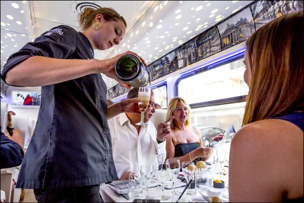La cena verrà replicata sino al 25 ottobre 8 volte alla settimana per un totale di 4 settimane con un itinerario turistico della durata di 2 ore, grazie al caterer specializzato Denis Roberty preparato per eseguire perfettamente le istruzioni della chef; per ciascuna corsa sono disponibili 34 posti. Le materie prime utilizzate sono esclusivamente fresche e locali e il menu è testato da una commissione presieduta dal “due stelle” Michelin Lionel Rigolet (Comme chez soi) per essere approvata prima di essere servita a bordo.