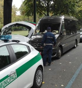 Stamane, altri Agenti della Polizia municipale, dotati di computer per la verifica dei tempi di guida dei cronotachigrafi, hanno controllato diversi autobus. Tra questi un bus rumeno che trasportava una comitiva magiara diretta in Francia (foto). Dagli accertamenti è emerso che il conducente utilizzava una carta tachigrafica di un altro autista che, presumibilmente, non si trovava nemmeno in Italia. La carta è stata sequestrata e, dopo il pagamento immediato della sanzione di 843 euro, l’autista, a cui è stata ritirata la patente, è stato autorizzato a condurre il veicolo fino al confine di Ventimiglia
