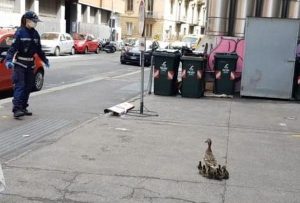La fine del lockdown e la successiva ripresa del traffico veicolare devono aver fatto propendere ‘mamma anatra’ per un ritorno in un ambiente naturale meno movimentato e, nel pomeriggio di ieri, insieme a tre dei nove anatroccoli, ha abbandonato il nido ed è scesa in strada. Gli agenti della Polizia Municipale hanno recuperato gli altri sei piccoli rimasti sul balcone e, con la collaborazione di alcuni residenti, hanno scortato la simpatica famigliola fino al Parco del Valentino, dove tutti insieme hanno potuto fare ‘il loro primo bagnetto’.