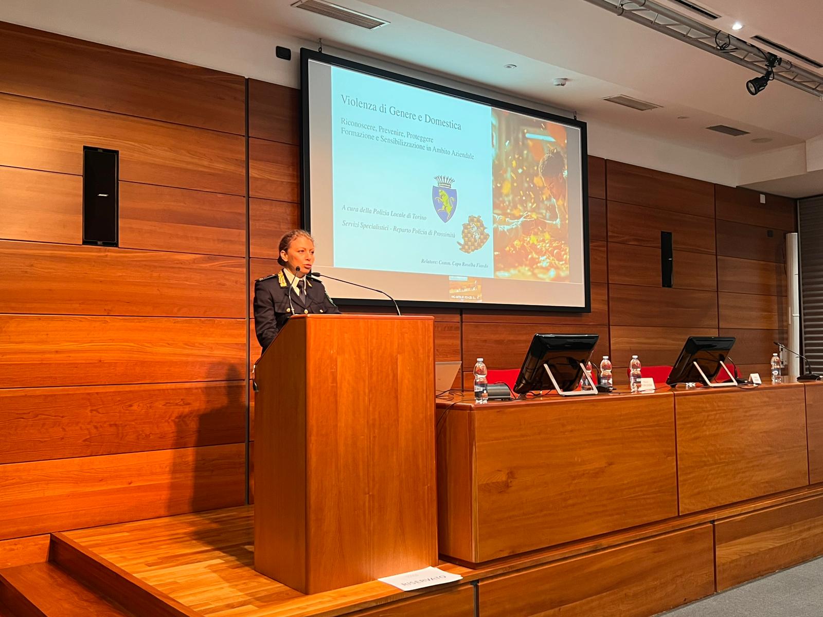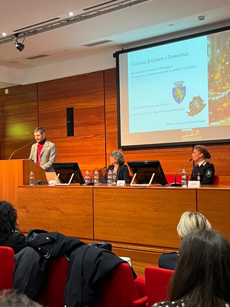 Alla presenza dell’assessore alla Polizia Locale e alla Sicurezza di Torino Marco Porcedda, martedì 3 febbraio, nella sede del gruppo Iveco, la responsabile del Reparto di Prossimità, la commissaria capo Rosalba Fiando, ha tenuto una lezione sulla violenza domestica e di genere, non solo quelle fisiche e sessuali, ma anche psicologica (minacce, umiliazioni, svalorizzazione e controllo) ed economica (la privazione o limitazione nell’accesso alle proprie disponibilità economiche). A questo si aggiunge il fenomeno della violenza assistita dai bambini, vero e proprio reato altamente traumatizzante per i minori che si trovano a vivere tali situazioni familiari.