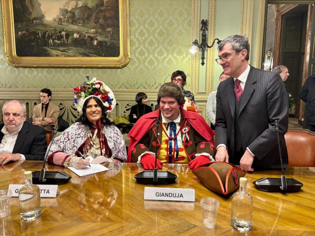 Come da tradizione, la nomina si è svolta con atto pubblico davanti al notaio: per il 2026 sono stati confermati Marco Raiteri nei panni di Gianduja e Tina Scavuzzo in quelli di Giacometta.