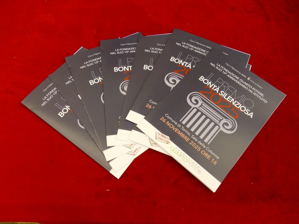 Oggi pomeriggio, nella sala delle Colonne di Palazzo civico, si è svolta la cerimonia di consegna del “Premio Bontà Silenziosa” organizzata dalla Fondazione Quarto Potere con il patrocinio della Città di Torino.