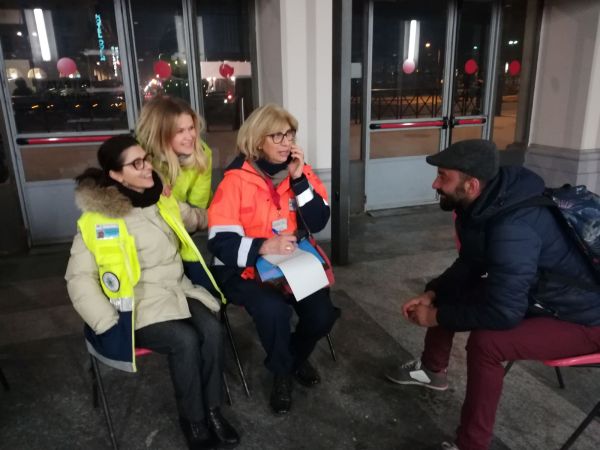 “A Porta Susa si presentano, durante la notte, famiglie, gruppi di ragazzi, associazioni di volontariato, singoli cittadini armati di cibo e abbigliamento, coperte e sacchi a pelo”, spiega Maria, agente di Polizia municipale in servizio nella protezione civile. Tutti la chiamano così, in stazione: semplicemente Maria. “Dopo 25 anni passati in strada con le pattuglie, ti basta guardare negli occhi le persone per capirle, per creare un contatto. Gli occhi sono lo specchio dell’anima, capirlo e viverlo ogni giorno, guardare negli occhi i volontari e gli ospiti notturni mi rende più semplice e gratificante essere qui”.