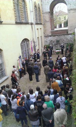 Alla cerimonia hanno partecipato un picchetto in armi del Battaglione Trasmissioni Frejus e il trombettiere della Brigata alpina Taurinense, i Gonfaloni della Città di Torino e della Regione Piemonte e due classi della 3^ media dell’Istituto comprensivo Gozzi Olivetti.