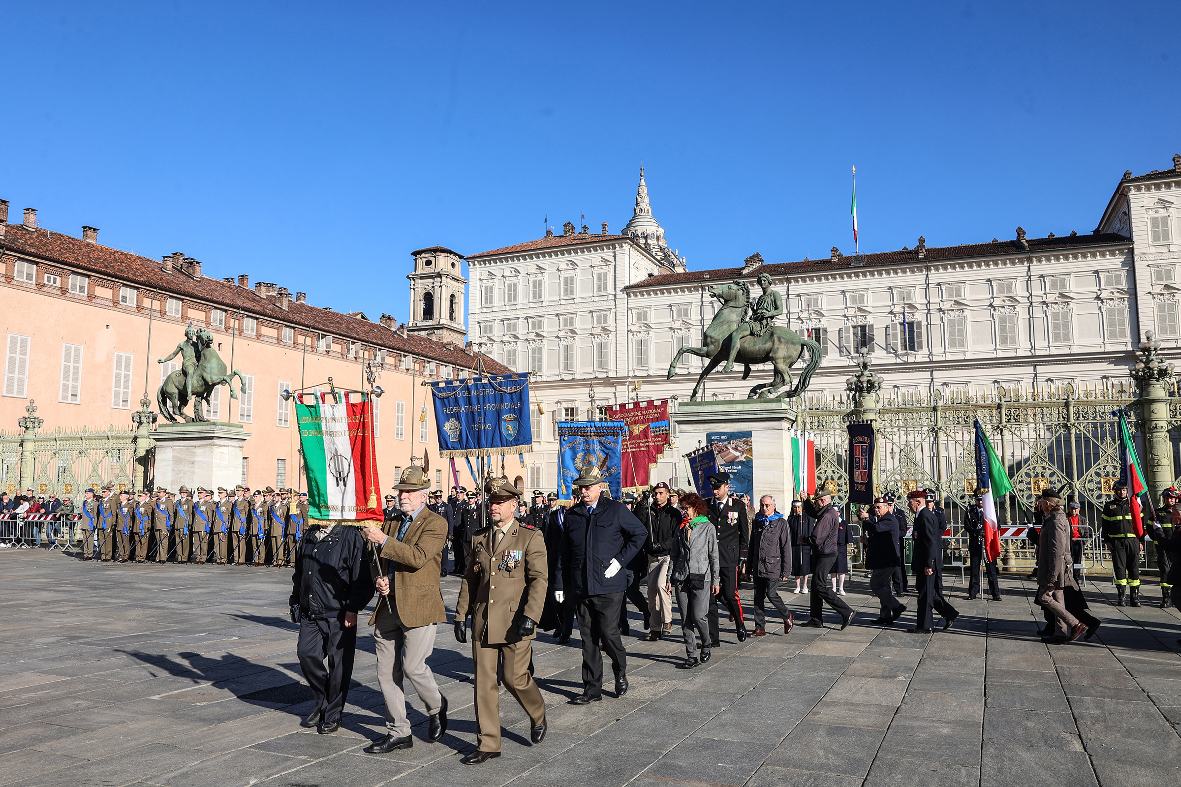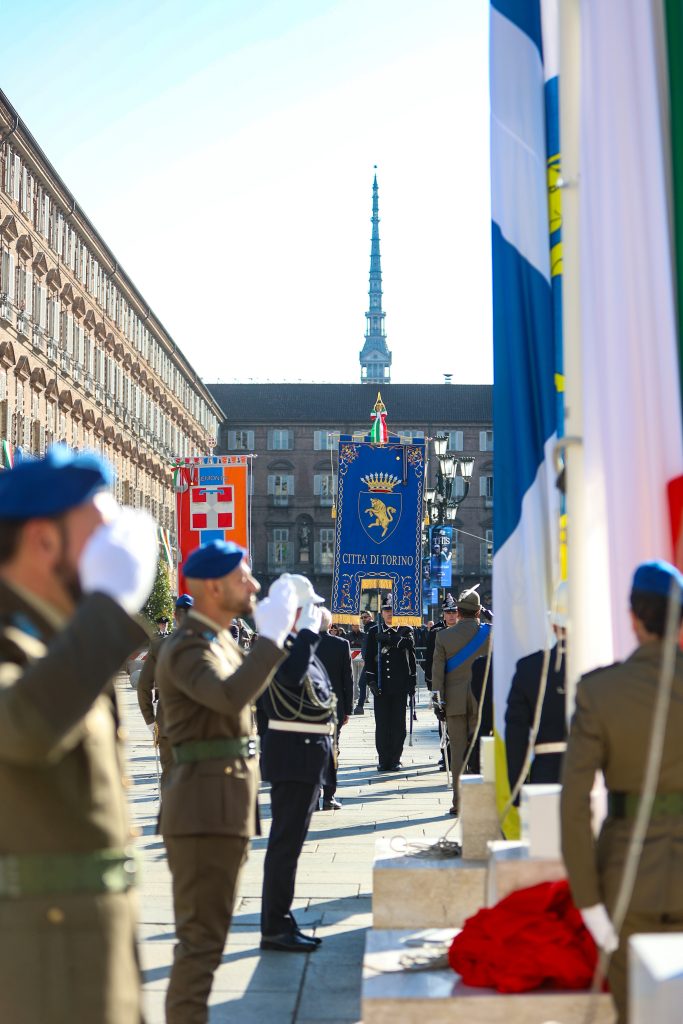 Il 4 novembre l’Italia ricorda, commemorando i suoi Caduti, l’Armistizio di Villa Giusti, entrato in vigore proprio in questo giorno nel 1918. La data è celebrata con la Giornata dell’Unità nazionale e delle Forze armate. Questa mattina, in piazza Castello, alla presenza di numerosi cittadini e cittadine torinesi, delle autorità militari e locali, l’assessore alla sicurezza e legalità Marco Porcedda e il vicepresidente vicario del Consiglio comunale, Domenico Garcea, hanno reso omaggio al Tricolore, issato sui pennoni antistante il Palazzo Reale insieme ai vessilli della Città di Torino e dell’Unione Europea. Alle 11 è stata celebrata la messa nella chiesa di San Lorenzo. La cerimonia dell’ammaina bandiera si è svolta oggi pomeriggio, alle 17.