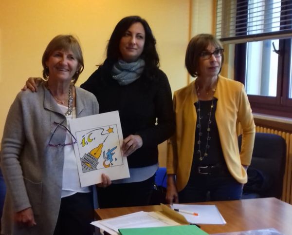 La giuria si è riunita ieri e ha scelto il disegno di Michela Allitto della classe 4B, scuola Coppino. Nella foto, insieme alla assessora all’Istruzione, le dirigenti scolastiche Chiara Alpestre e Laura Arossa, che mostrano il disegno scelto quale logo.