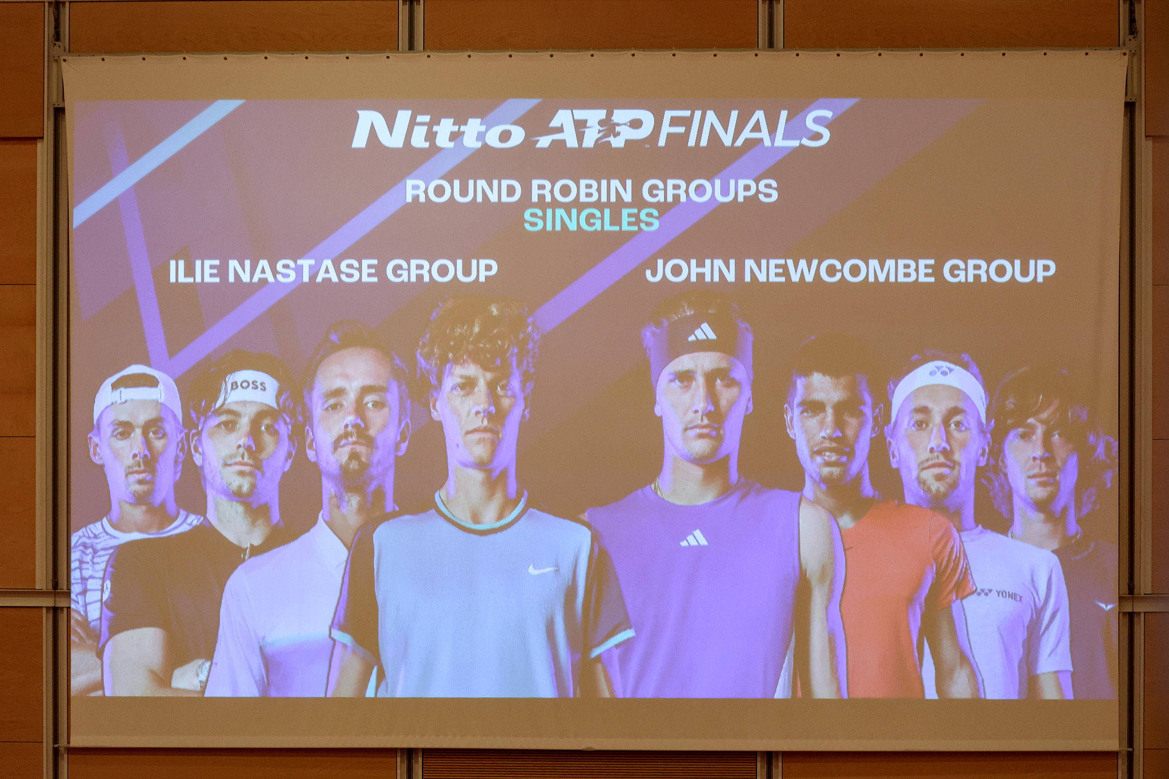 Nel girone Ilie Nastase si affronteranno: il numero uno del ranking, l’azzurro Jannik Sinner, Daniil Medvedev, Taylor Fritz e l’esordiente Alex De Minaur. Nel girone John Newcombe si sfideranno il numero due del tabellone Alexander Zverev, Carlos Alcaraz, Casper Ruud e Andrey Rublev.