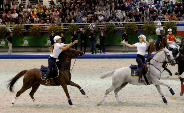 Di cosa si tratta? L’Horse Ball è una specialità di squadra intensamente spettacolare che abbraccia il dinamismo del basket, l’energia del polo e la destrezza del volteggio. Due squadre di quattro cavalieri (più due riserve a bordo campo) si contendono una palla con sei maniglie di cuoio, cercando di lanciarla in uno dei due canestri posti ai limiti del campo, durante una partita di 20 minuti (due tempi da 10 minuti intervallati da una sosta di 3).