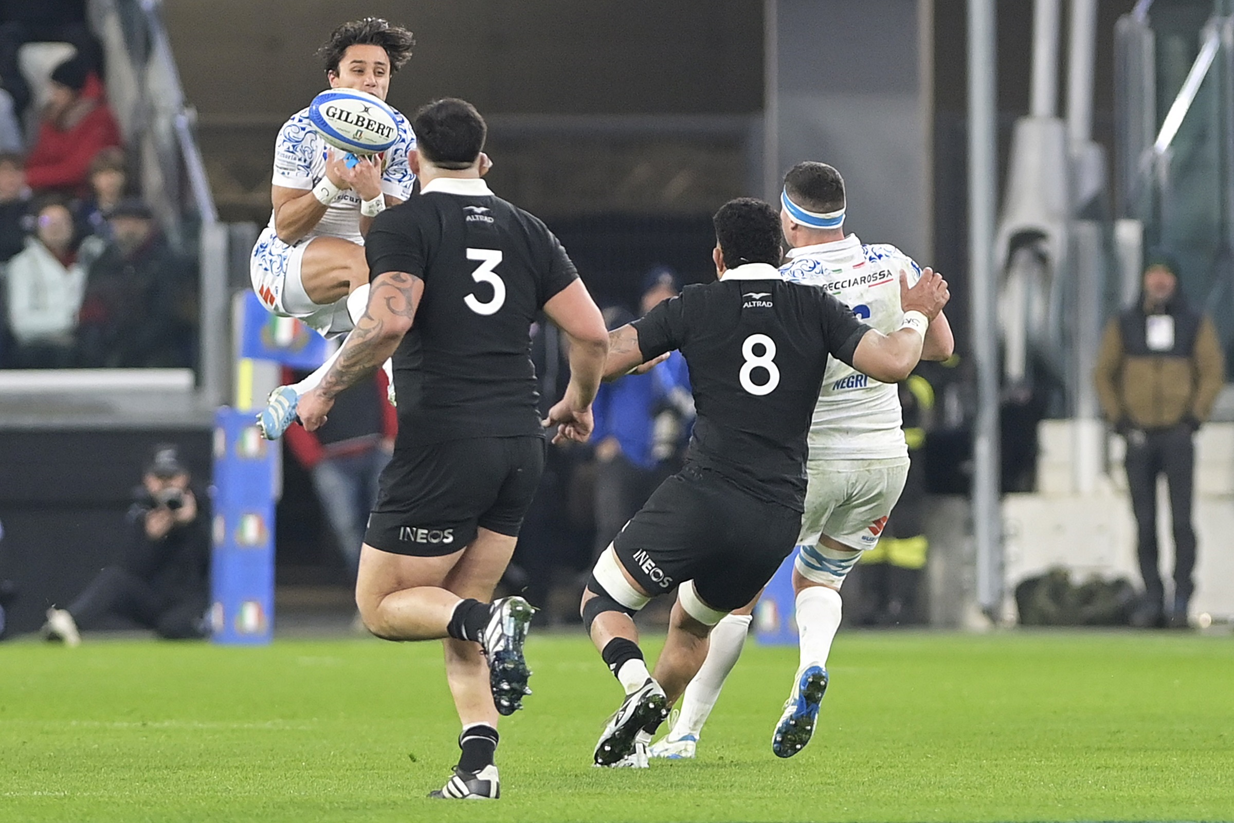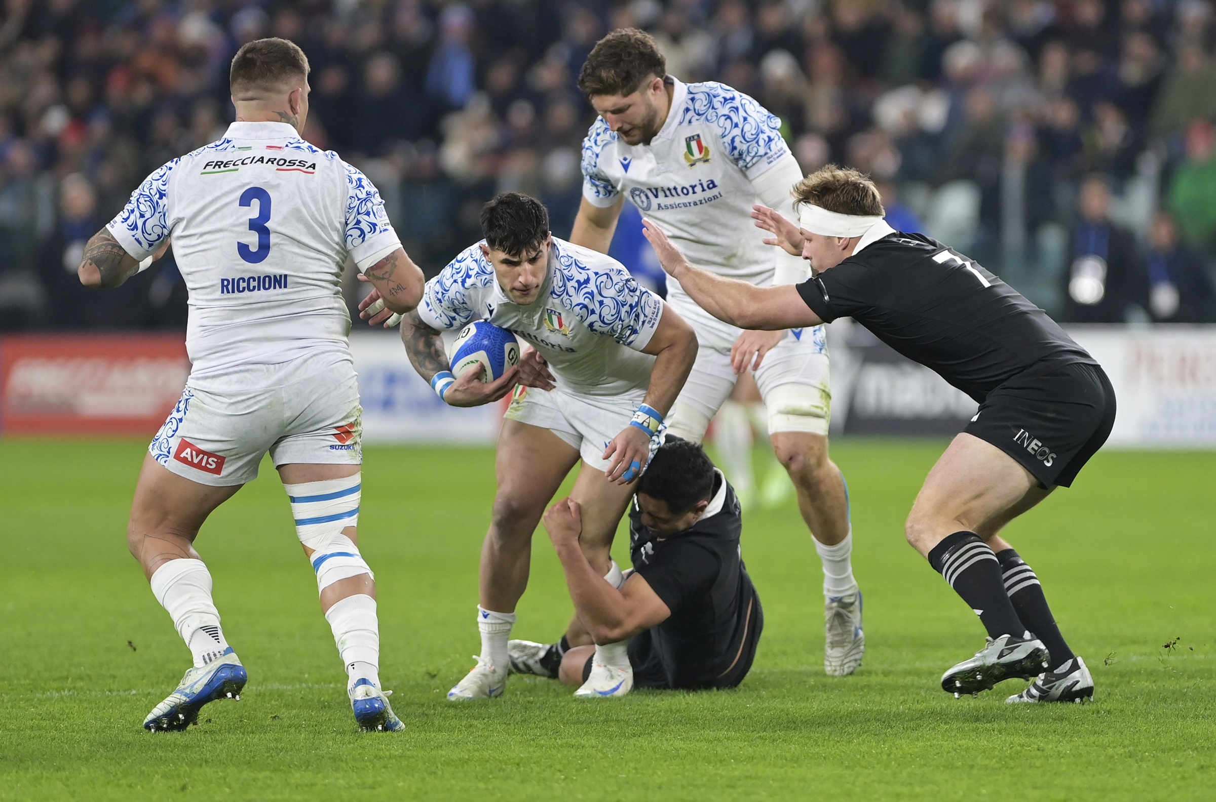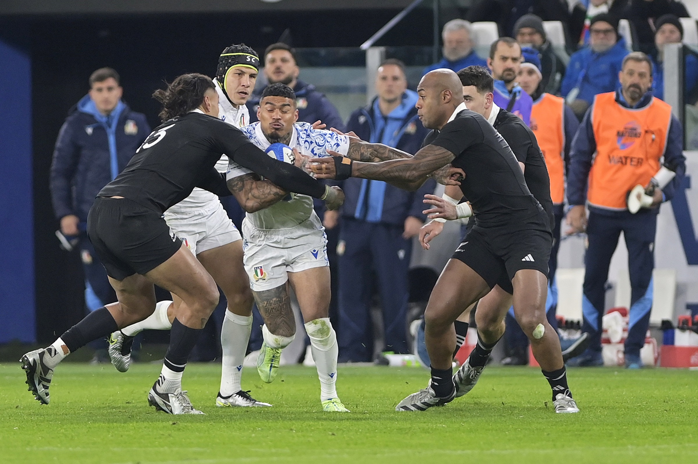 Grande spettacolo questa sera all’Allianz Stadium di Torino, che ha ospitato la partita di rugby tra la nazionale italiana e i leggendari All Blacks, la squadra più iconica e famosa al mondo. La sfida, che si é conclusa con il punteggio di 29-11 per la Nuova Zelanda, ha regalato emozioni indimenticabili agli oltre 40mila spettatori presenti sugli spalti.