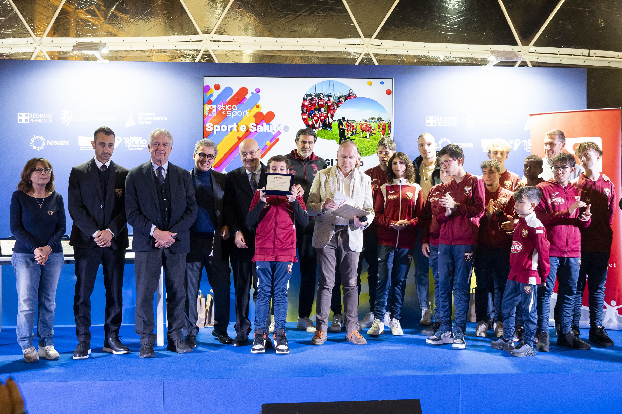 Lo sguardo si è poi spostato sul legame tra sport e salute, con il riconoscimento attribuito alla squadra 100% UGI Torino: un’esperienza nata dalla collaborazione tra l’Ospedale Infantile Regina Margherita, l’Unione Genitori Italiani e il Torino FC, che restituisce ai giovani guariti da tumore la gioia del campo, della squadra e della normalità. “Attraverso il gioco e la condivisione – hanno ricordato i promotori – si supera la paura e si riscopre la forza di stare insieme.”