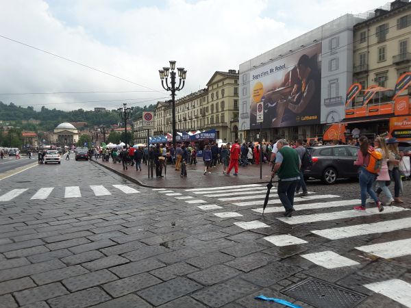 Piazza Vittorio, ore 14.15. Arriva il pubblico per la tappa finale del Giro d’Italia.