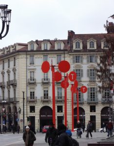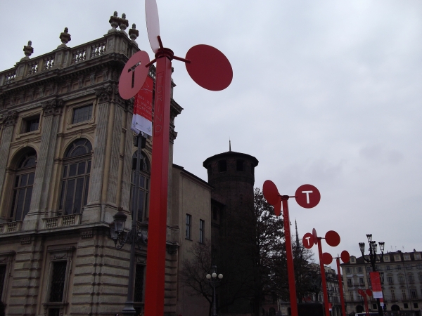 Si tratta di parte degli stessi elementi promozionali che, insieme agli stendardi rosso cinabro, contribuirono nel febbraio di undici anni fa a diffondere l’immagine di una Torino aperta al mondo.