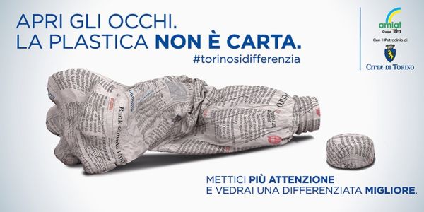 Con lo slogan “Apri gli occhi! #torino si differenzia”, attraverso un linguaggio diretto ed immagini volutamente esplicative e curiose, si richiama l’attenzione del pubblico sull’importanza di una corretta raccolta differenziata. Per una maggiore diffusione della campagna, che sarà on-air per circa 20 giorni, sono stati utilizzati numerosi e diversificati veicoli di comunicazione.