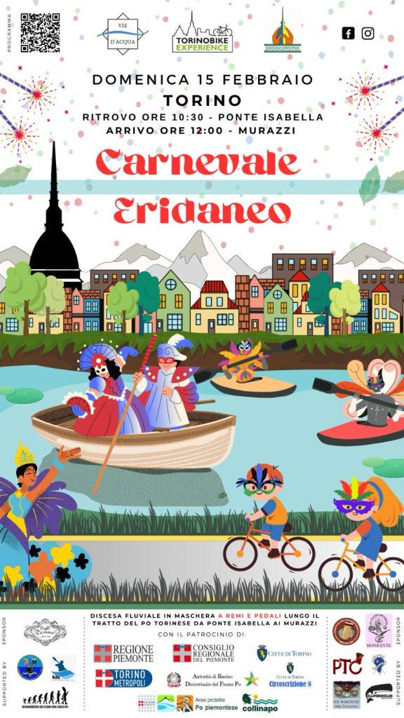 Il Carnevale si svolgerà lungo il tratto compreso tra il ponte Isabella e i Murazzi, nel cuore della Riserva MAB Collina Po, trasformando il fiume in un palcoscenico naturale. I soci delle società remiere torinesi sfileranno in acqua accompagnati dalle maschere barocche dell’associazione Noi Maschere Stile Veneziano, mentre i partecipanti su due ruote di Torino Bike Experience percorreranno le sponde del fiume in costume. Le due sfilate partiranno separatamente dalla sponda sinistra del Po per poi ricongiungersi nei pressi del ponte Isabella e proseguire insieme fino alle arcate dei Murazzi dove è in corso di realizzazione il futuro River Center.