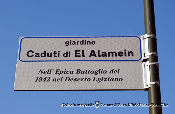 Si è svolta venerdì 23 ottobre 2015 alle ore 11, in via Cavagnolo, la cerimonia di intitolazione di un giardino a ricordo dei Caduti di El Alamein. Erano  presenti in rappresentanza della Città Giovanni Porcino presidente del Consiglio comunale,  per il Consiglio comunale e regionale il consigliere Maurizio Marrone e le autorità civili e militari.