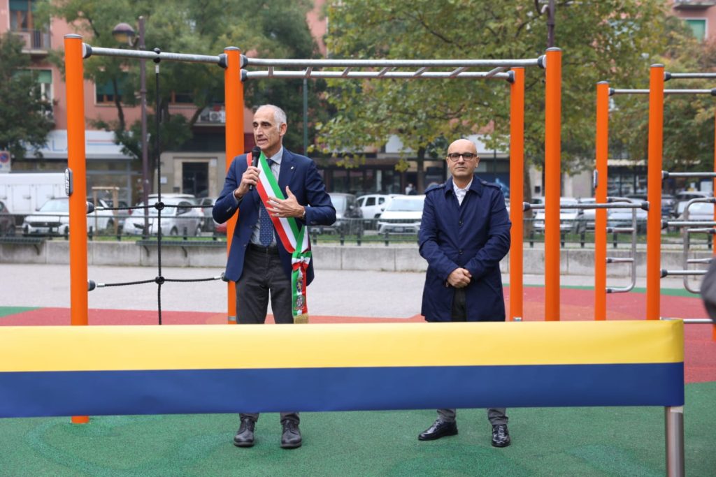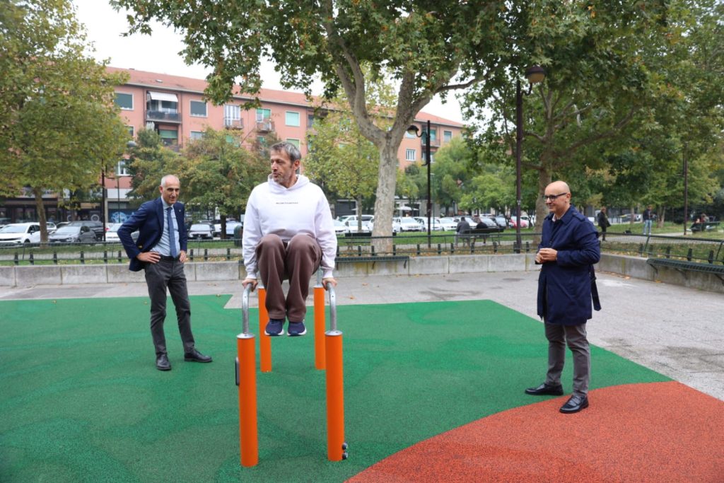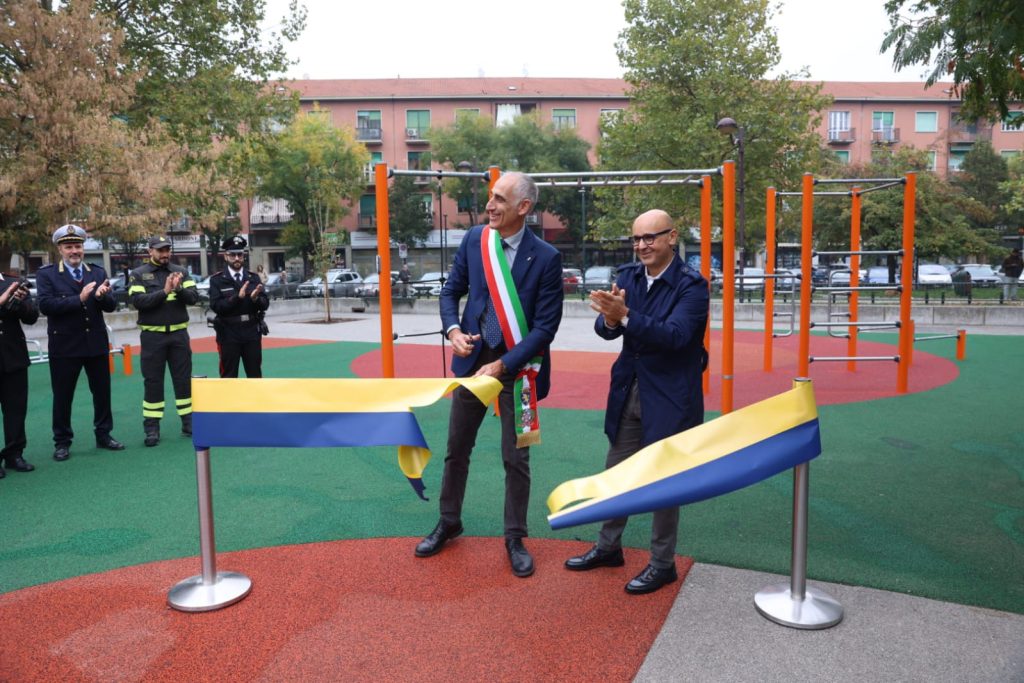 Una nuova area con attrezzature per esercizi e attività fisica, che arricchisce l’attrattività del giardino Valentino Mazzola, è stata inaugurata questa mattina in piazza Galimberti, alla presenza dell’assessore al Verde pubblico, Francesco Tresso, e del presidente della Circoscrizione Otto, Massimiliano Miano.