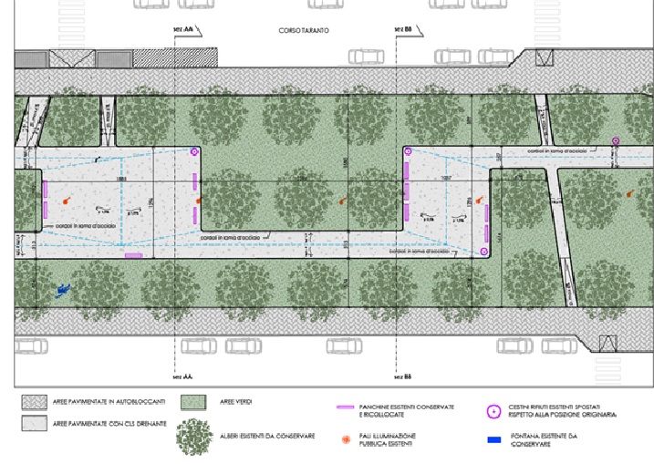Cuore dell’intervento sarà il sistema delle opere pubbliche connesse, che serviranno a rafforzare la qualità e la fruibilità dello spazio urbano. È prevista la realizzazione di un parcheggio a raso di circa 1.600 metri quadrati, con accesso da corso Taranto, per un totale di circa 95 posti auto, oltre la metà dei quali da destinare ad uso pubblico. Una quota significativa degli stalli sarà dotata o predisposta per la ricarica di veicoli elettrici. Il progetto integra soluzioni permeabili e drenanti, con stalli inerbiti e pavimentazioni capaci di migliorare la gestione delle acque meteoriche. A queste opere si affiancheranno un nuovo impianto di illuminazione pubblica, la sistemazione delle aree verdi e l’inserimento di elementi di ombreggiamento. Sono inoltre previsti il rifacimento dei marciapiedi lungo via Botticelli e corso Taranto, con materiali drenanti, e la riqualificazione della banchina centrale del corso nel tratto verso piazza Derna, attraverso una nuova pavimentazione e il riordino dell’arredo urbano, che torna ad essere completamente fruibile alla cittadinanza. Le opere di urbanizzazione saranno interamente realizzate a cura e spese del proponente, per un investimento complessivo di circa 302 mila euro, a cui si aggiungono circa 338mila euro per l’intervento sulla banchina di corso Taranto.